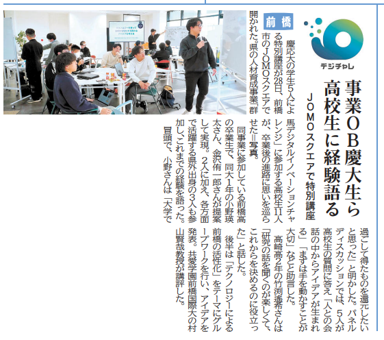 慶応大の学生5人による特別講座が28日、前橋市のJOMOスクエアで開かれた。